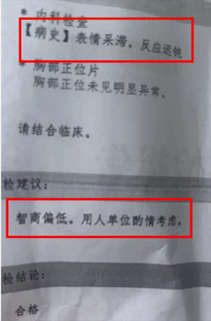 ·江蘇一醫(yī)院出具報(bào)告稱體檢者“智商偏低”?衛(wèi)健委工作人員:正在多方面了解該事件,調(diào)查該體檢報(bào)告的真?zhèn)巍?/p>