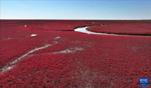 近日,遼寧省盤錦紅海灘國(guó)家風(fēng)景廊道內(nèi)的堿蓬草迎來(lái)最佳觀賞期,吸引了眾多游客前來(lái)觀賞游玩。