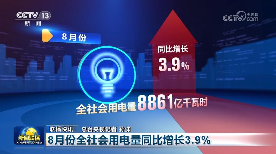 國家能源局今天發(fā)布用電量數(shù)據(jù)顯示,8月份,全社會用電量8861億千瓦時(shí),同比增長3.9%。第一、二、三產(chǎn)業(yè)用電量均呈現(xiàn)增長態(tài)勢,同比分別增長8.6%、7.6%和6.6%,經(jīng)濟(jì)運(yùn)行繼續(xù)延續(xù)回升向好態(tài)勢。