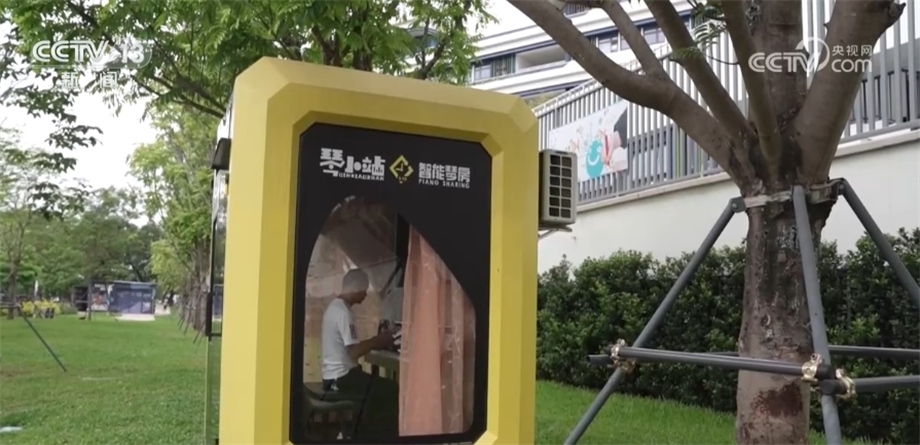 總臺(tái)央視記者 喬亞美:在深圳的街頭,我們發(fā)現(xiàn)了一些像我身后這樣的小型智能琴房,我們了解到,像這樣的智能琴房只需要通過(guò)小程序或者手機(jī)掃碼提前預(yù)約就可以免費(fèi)使用了,我已經(jīng)提前預(yù)約了這會(huì)兒的時(shí)間,我們一起去體驗(yàn)一下。