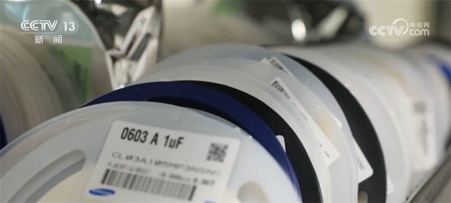 達豐(重慶)電腦有限公司資深經理 劉洪亮:這就是我們即將要投到生產線上去生產的材料,因為它是SMT工藝流程的貼片技術,所以它的材料都是成卷包裝的。這一卷,你看這個數量,4000個,這個更夸張,一卷1萬個。