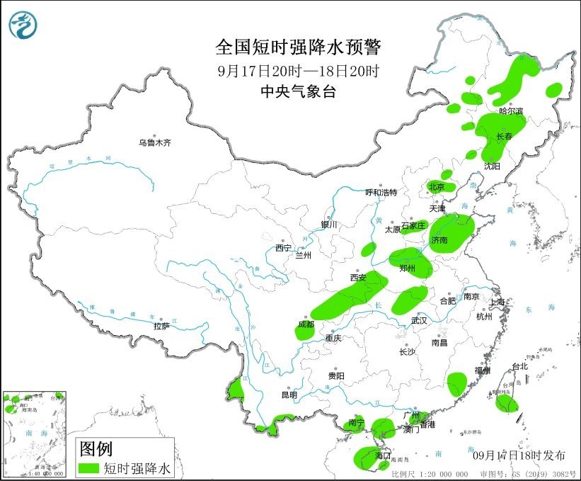 央視網(wǎng)消息:據(jù)中央氣象臺網(wǎng)站消息,中央氣象臺9月17日18時繼續(xù)發(fā)布強(qiáng)對流天氣藍(lán)色預(yù)警。預(yù)計(jì)9月17日20時至18日20時,內(nèi)蒙古東部、黑龍江南部和東北部、吉林中西部、遼寧中西部、陜西北部和中部、山西北部和東南部、河北東北部和南部、北京東北部、天津北部、山東西北部、河南中北部和東部、湖北北部等地的部分地區(qū)將有8-10級雷暴大風(fēng)或冰雹天氣,局地風(fēng)力可達(dá)11級以上;內(nèi)蒙古東部、黑龍江中西部、吉林中西部、遼寧西部和北部、陜西南部、河北東北部和南部、北京東北部、天津北部、山東中西部、河南北部和東部、湖北中部和西部、福建南部、四川盆地中東部、云南西部和南部、廣西南部、廣東西南部、海南島、臺灣島南部等地的部分地區(qū)將有短時強(qiáng)降水天氣,最大小時雨量20-50毫米,局地可達(dá)60毫米以上。