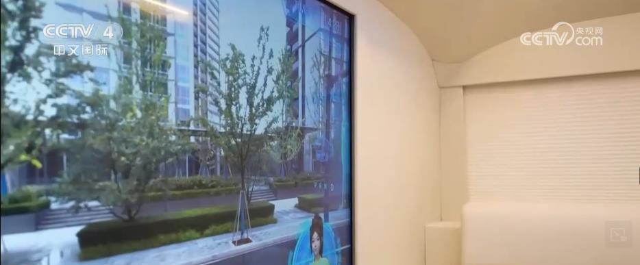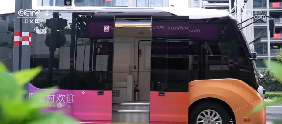 總臺記者 黃珊:亞運(yùn)村里的AR智能巴士在全自動巡航狀態(tài)下,能為乘客提供接駁、講解的服務(wù)。正前方的特殊窗戶結(jié)合車載AR功能,透過它能夠看到車外的實時影像,結(jié)合虛擬場景,虛實結(jié)合,非常奇妙。