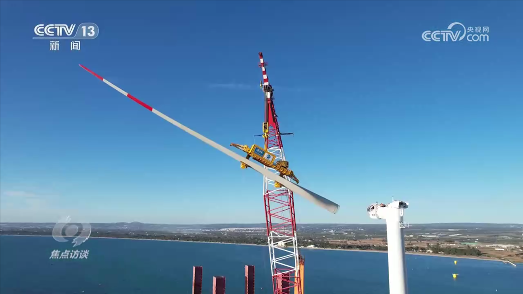 明陽(yáng)集團(tuán)黨委書記、董事長(zhǎng)張傳衛(wèi):“18兆瓦的風(fēng)機(jī)葉輪直徑可以達(dá)到290米,它轉(zhuǎn)一圈就可以發(fā)到60度電,一年下來(lái)可以發(fā)1億度電,覆蓋10萬(wàn)個(gè)家庭用電,減少7萬(wàn)噸的二氧化碳排放。”