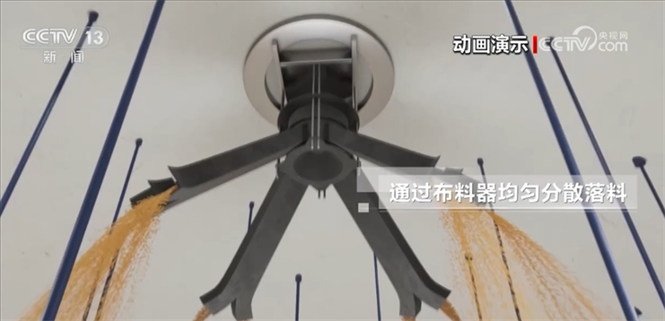 倉(cāng)內(nèi)頂部安裝的布料器能讓大豆入倉(cāng)時(shí)均勻、分散下落,減少糧食的自動(dòng)分級(jí)和雜質(zhì)的聚集,更有利于后續(xù)的安全保管。