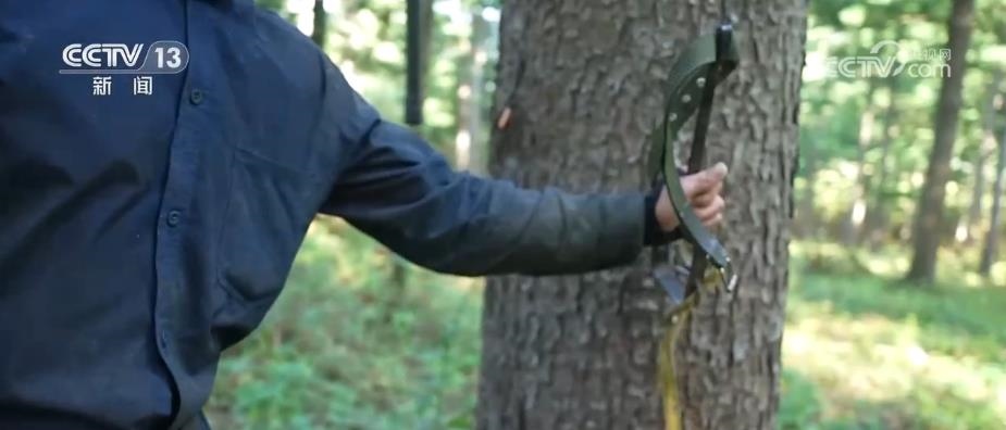 紅松樹長到15年的時候開始結(jié)果,可以持續(xù)結(jié)果到百年以上。要在高大筆直的樹干上自由攀爬,除了需要敏捷的身手和豐富的經(jīng)驗之外,還需要借助一些工具。