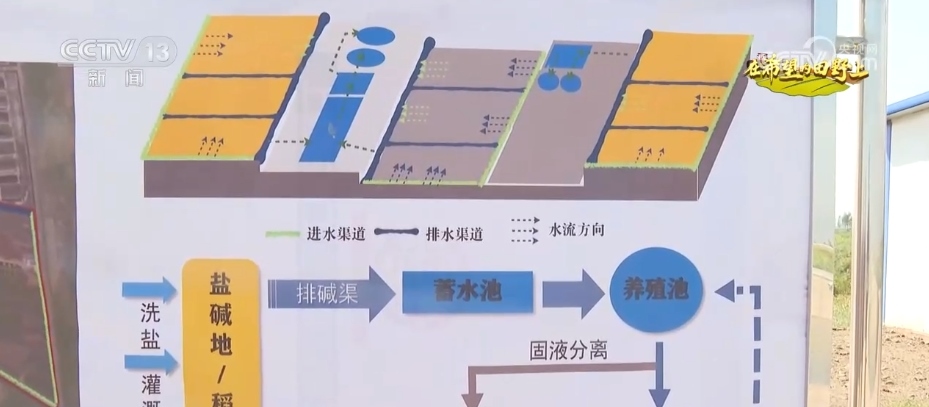 王永利說,通過淡水灌溉會將鹽堿田里的鹽和堿排出地塊,排出的鹽堿水通過一道道排水溝循環(huán)到蓄水池,最后被輸送到養(yǎng)殖池里養(yǎng)魚,養(yǎng)魚產生的排泄物經過過濾后回輸到水稻田,這樣的漁農綜合利用模式讓鹽堿地不斷變好。