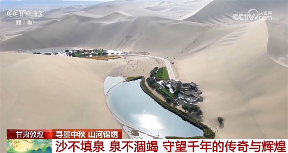 風(fēng)卷飛沙,月牙泉水卻始終碧波蕩漾,這里是甘肅敦煌。沙不填泉,泉不涸竭,鳴沙山與月牙泉就這樣守望千年,也吸引著世界各地的人們前來領(lǐng)略瀚海風(fēng)光。今年中秋和國慶假期,景區(qū)游客數(shù)量預(yù)計突破20萬人次。古道駝鈴,沙漠綠洲,風(fēng)聲、水聲伴著沙丘移動的聲音,千百年來,大自然一直在用最恢弘的方式訴說著一個天地之間的傳奇與輝煌。