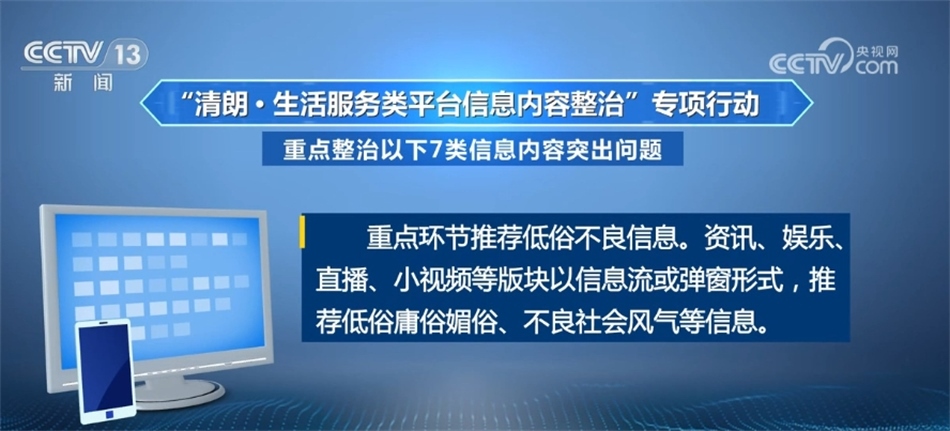 重點(diǎn)環(huán)節(jié)推薦低俗不良信息。資訊、娛樂、直播、小視頻等版塊以信息流或彈窗形式,推薦低俗庸俗媚俗、不良社會風(fēng)氣等信息?!?/p>