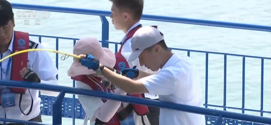 煙臺(tái)臺(tái)記者 朱程媛:這里是(煙臺(tái))萊山區(qū)四十里灣海域的“耕海一號(hào)”海洋牧場(chǎng)綜合體,不少的游客正在一期垂釣區(qū)進(jìn)行垂釣。從空中往下看,整個(gè)一期項(xiàng)目的造型其實(shí)就像是3個(gè)漂亮的花瓣,而這3個(gè)花瓣其實(shí)是3個(gè)養(yǎng)殖網(wǎng)箱,每年可以養(yǎng)殖優(yōu)質(zhì)魚(yú)類20萬(wàn)尾,年產(chǎn)量達(dá)到15萬(wàn)公斤。