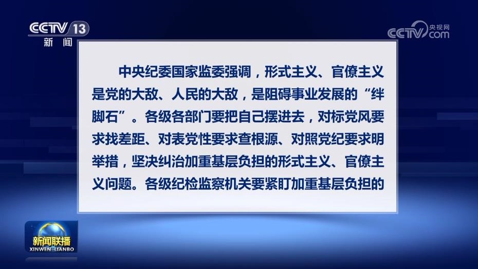 央視網(wǎng)消息(新聞聯(lián)播):二十屆中央紀委二次全會對加強作風建設作出部署,強調(diào)要重點糾治形式主義、官僚主義。日前,中央紀委國家監(jiān)委對十起加重基層負擔的形式主義、官僚主義典型問題進行公開通報。