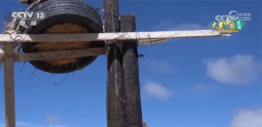三江源國家公園生態(tài)管護員 加羊多杰:這個窩是生態(tài)管護員自建的,黃河鄉(xiāng)有他們自建的鳥巢或者鳥窩286個。