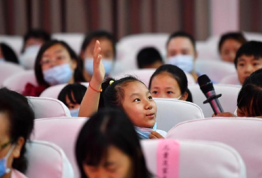 在天津市北辰區(qū)青光村黨群服務中心,學生在一場安全教育活動上回答問題。新華社記者 李然 攝