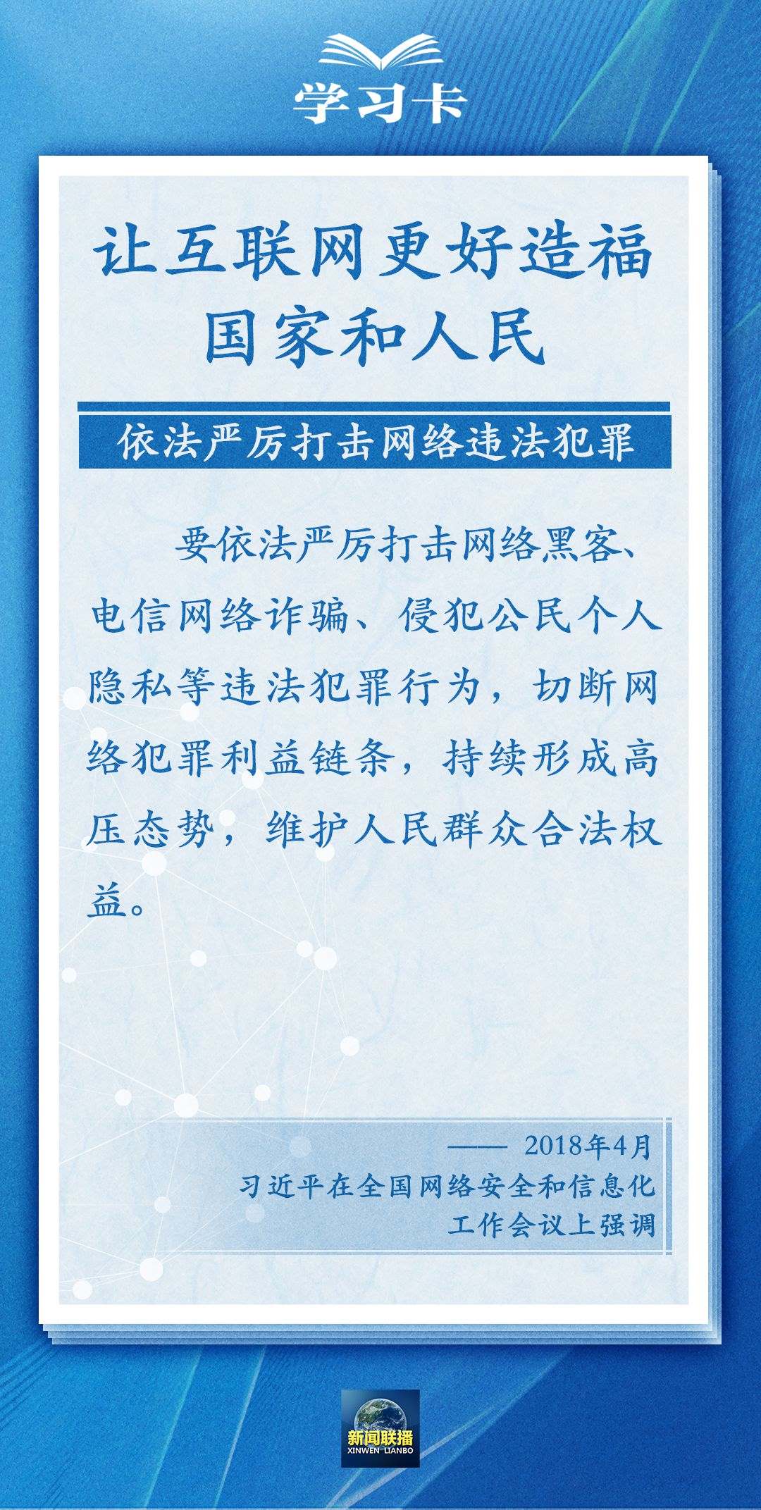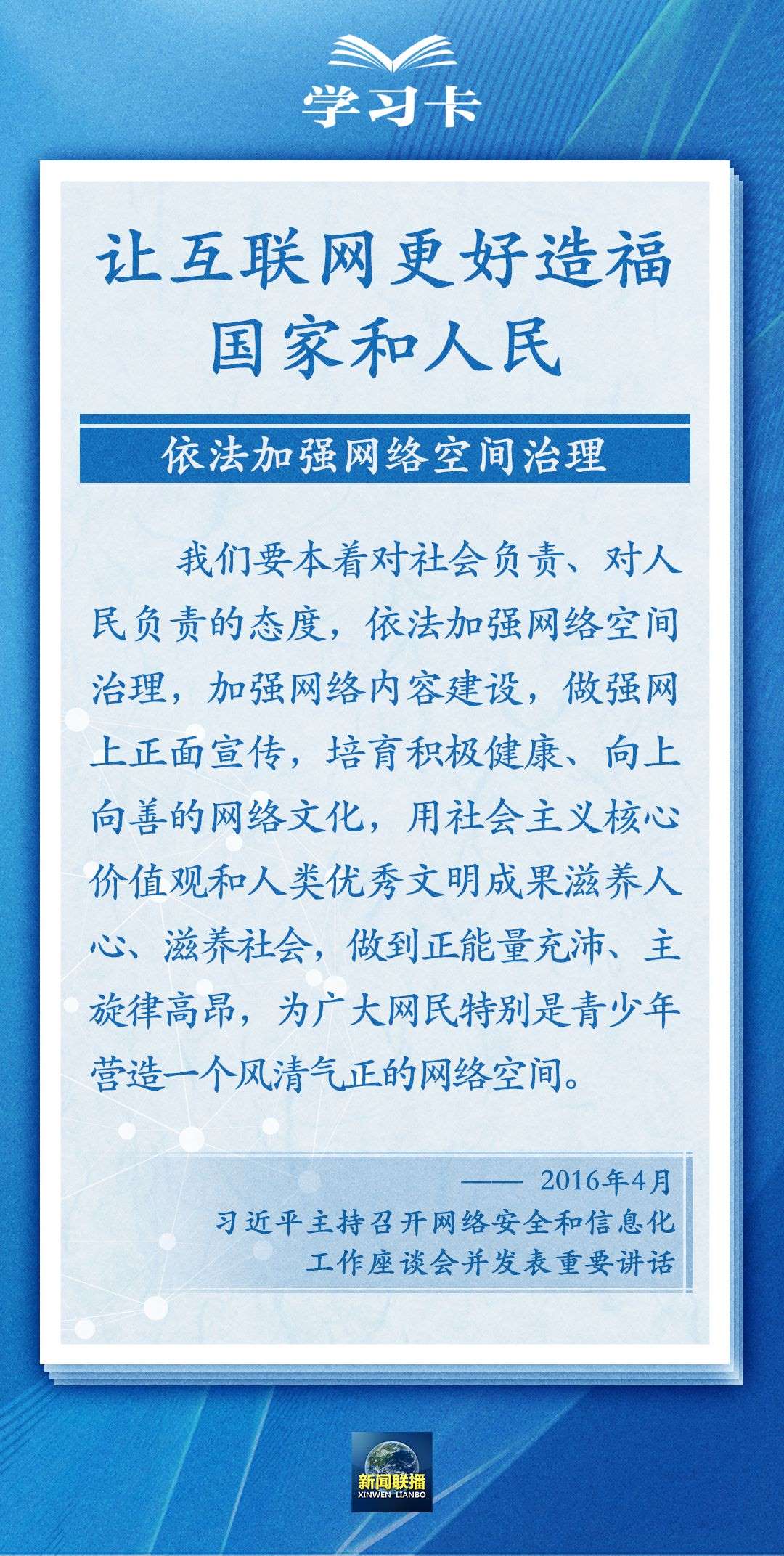網(wǎng)絡(luò)空間關(guān)乎人類命運(yùn)。重視互聯(lián)網(wǎng)、發(fā)展互聯(lián)網(wǎng)、治理互聯(lián)網(wǎng),推動(dòng)我國網(wǎng)信事業(yè)發(fā)展、建設(shè)網(wǎng)絡(luò)強(qiáng)國是習(xí)近平總書記念茲在茲的一件大事。