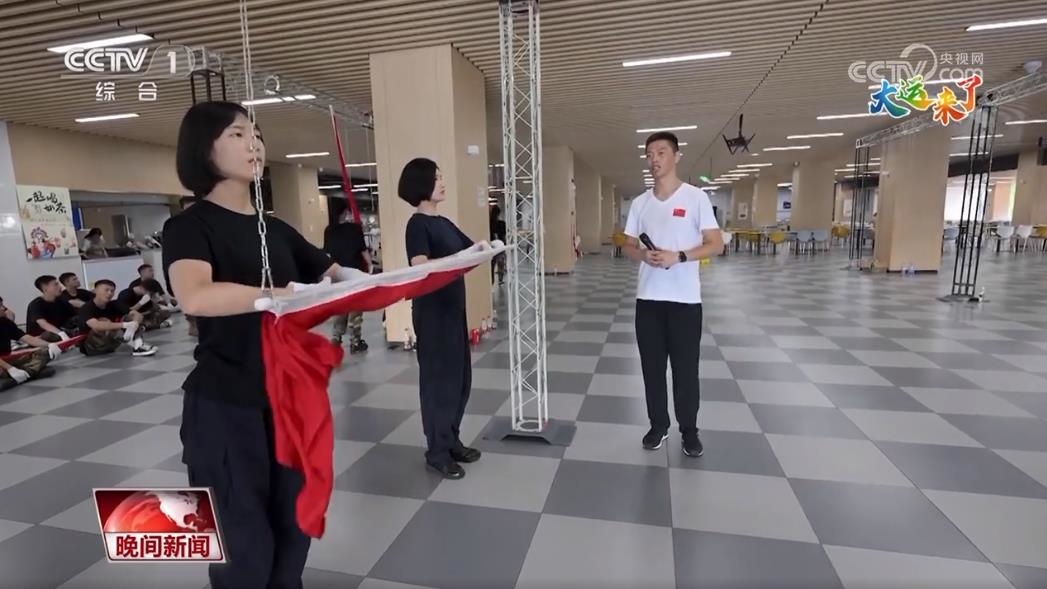 大運會頒獎儀式升旗手總教官 盛東龍:目的就是希望通過這么一場神圣而莊嚴(yán)的升旗儀式來感染他們,來激發(fā)和增強(qiáng)他們的愛國情懷,包括他們的使命擔(dān)當(dāng)。