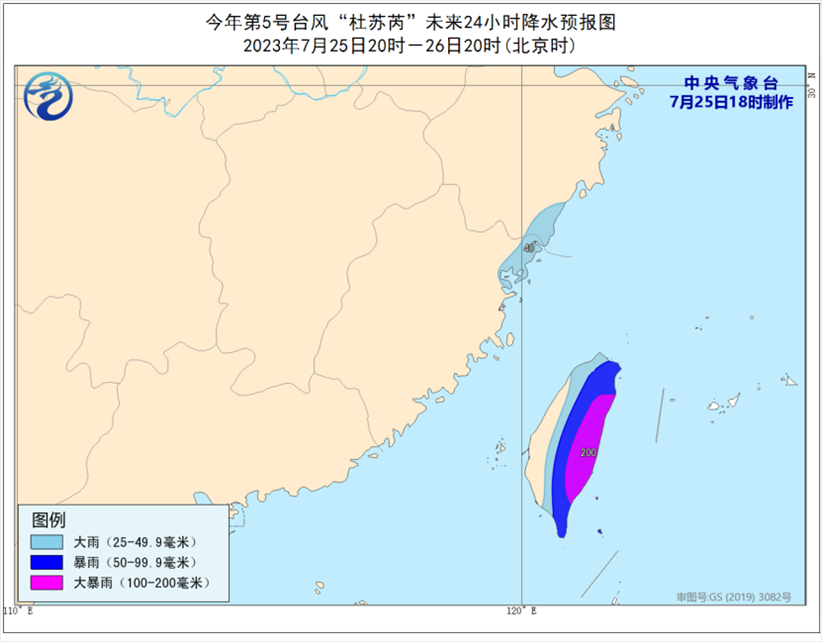 降水預報:25日20時至26日20時,浙江東南部沿海、福建東北部沿海、臺灣島等地的部分地區(qū)有大到暴雨,其中臺灣島東部的部分地區(qū)有大暴雨(100-200毫米)。
