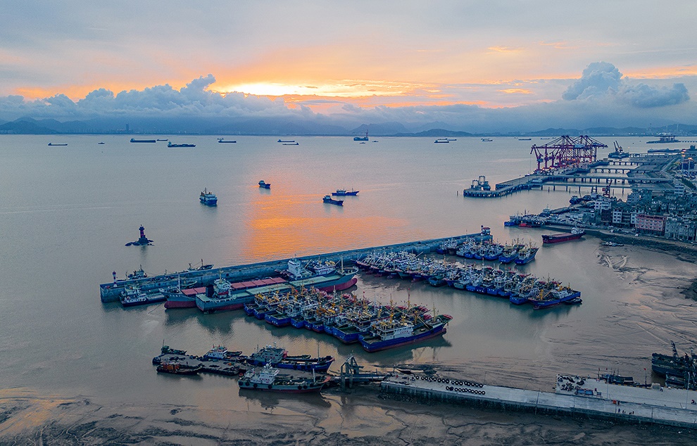 △2023年7月24日,避風(fēng)漁船??吭谡憬_(tái)州的漁港。