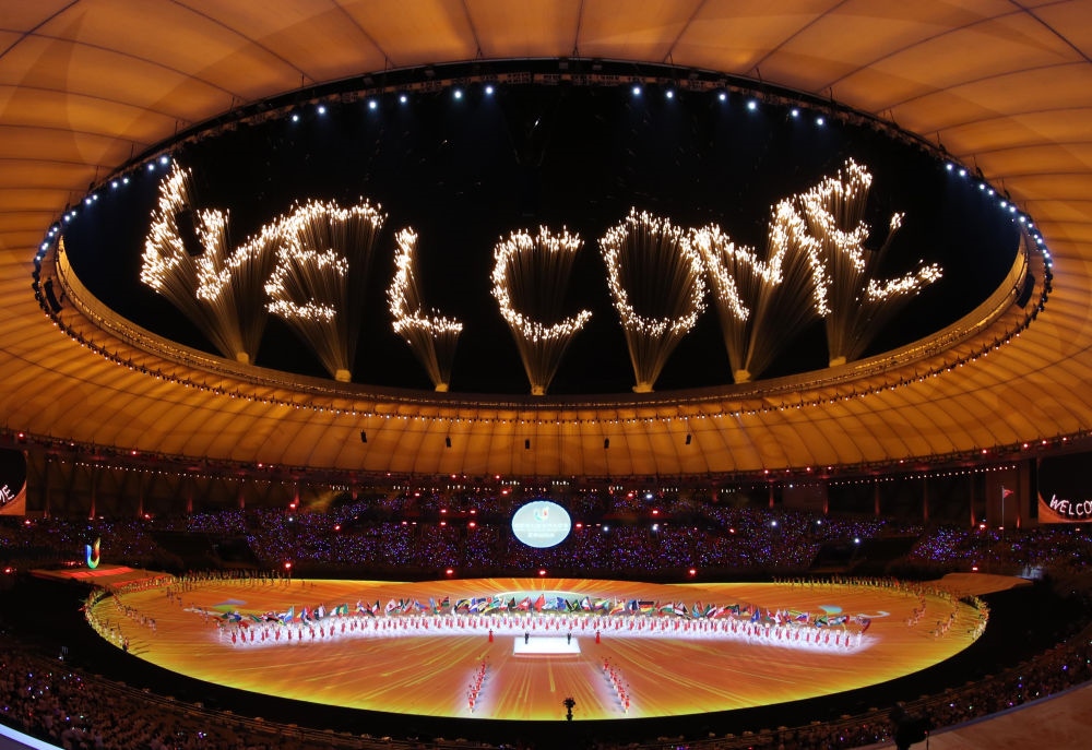 璀璨焰火,照亮碧波蕩漾的東安湖,在世界各地青年學(xué)生的熱切注目中,第三十一屆世界大學(xué)生夏季運動會開幕。