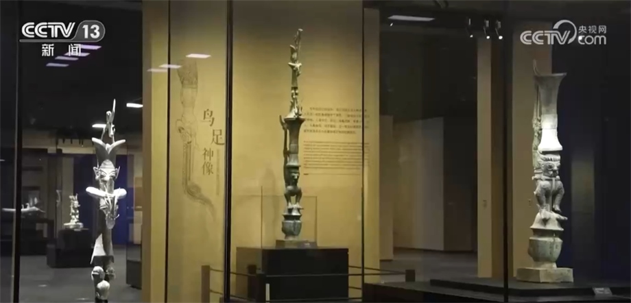 央視網(wǎng)消息:昨天(7月27日),三星堆博物館新館試運(yùn)行。在新館展出的文物中,有一件身高達(dá)2.53米的“倒立鳥(niǎo)足頂尊神像”以其腦洞大開(kāi)的奇妙設(shè)計(jì)獨(dú)樹(shù)一幟,那么這件器物究竟由多少塊“文物組件”組合而成?拼對(duì)“合體”后的它又長(zhǎng)什么樣呢?我們跟隨記者的鏡頭一探究竟。