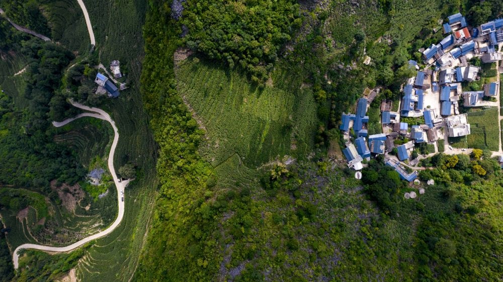 這是7月26日拍攝的西疇縣山間公路一景,遠(yuǎn)處是縣城。新華社記者 陳欣波 攝