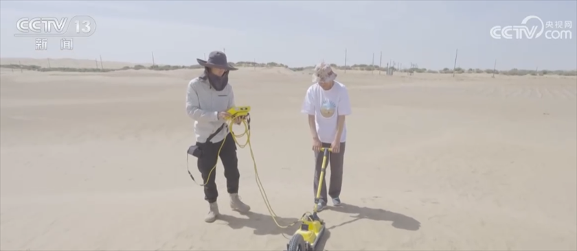 總臺央視記者 任梅梅:這里是吐魯番盆地的荒漠地區(qū),在我身后科考隊員剛剛架設(shè)起了這樣一座自動氣象站,配合空中無人機和衛(wèi)星遙感等一系列科技手段,可以實現(xiàn)“天空地一體化”監(jiān)測。