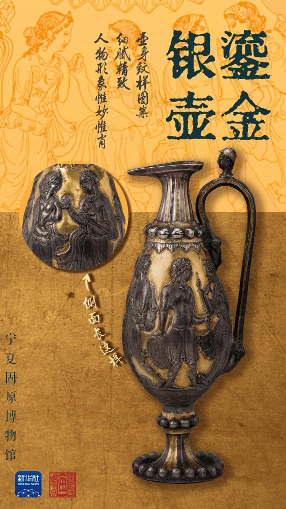 鎏金銀壺有何特殊之處?這件波斯王朝的酒具,是在薩珊時(shí)代的巴克特里亞地區(qū)制造而成,距今已有1500年歷史,壺身上的雕刻以連環(huán)畫的形式講述了希臘神話故事里的內(nèi)容?!蚌探疸y壺整體造型融合了波斯薩珊金銀器風(fēng)格、希臘風(fēng)格和巴克特里亞當(dāng)?shù)卦??!睂幭墓淘┪镳^副館長(zhǎng)張強(qiáng)介紹,在現(xiàn)階段出土文物中,鎏金銀壺不僅在中國(guó)只此一件,在世界現(xiàn)存的薩珊金銀器中亦屬罕見(jiàn)。