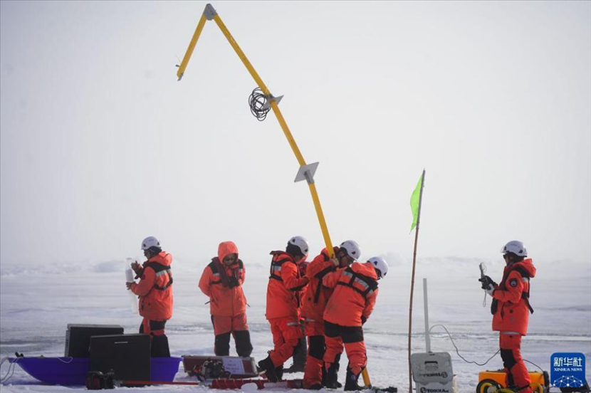 中國第13次北冰洋科學(xué)考察隊正式開始海冰綜合調(diào)查作業(yè)。
