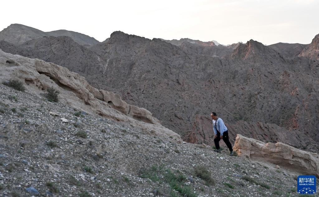 8月20日,董海寧徒步巡查賀蘭山沿線的明長(zhǎng)城永寧段。新華社記者 馮開華 攝