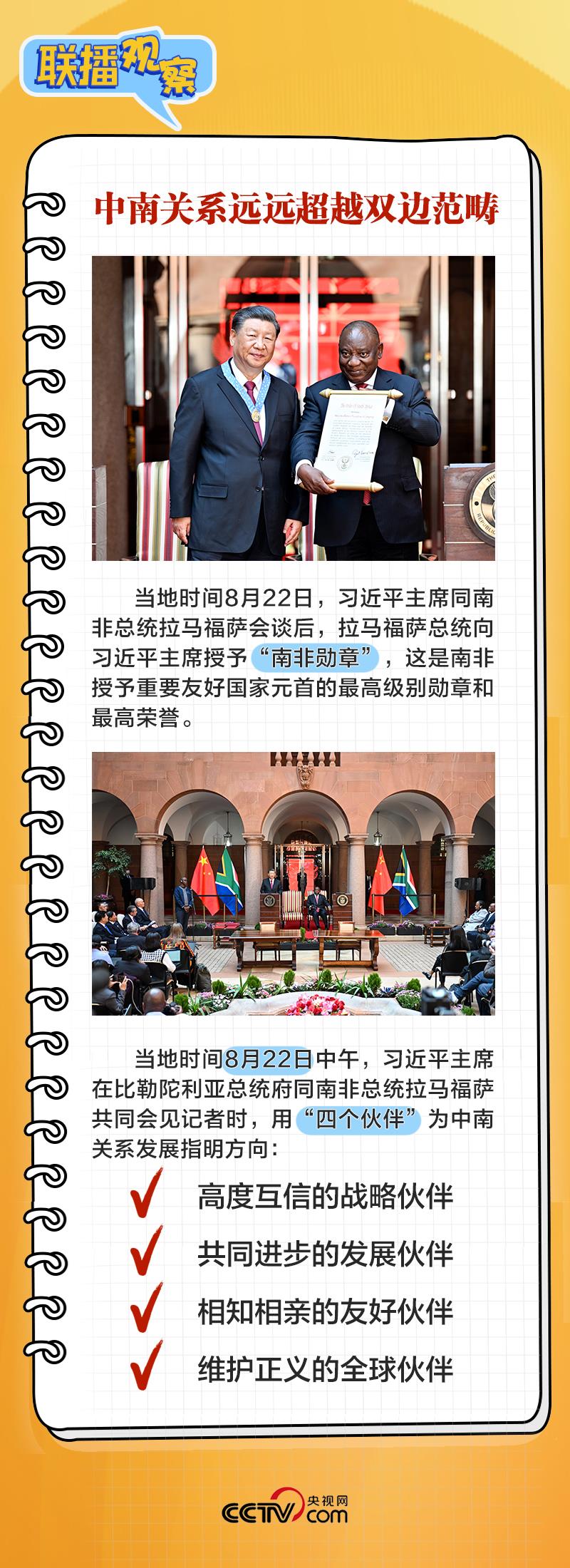 8月22日上午,在同南非總統(tǒng)拉馬福薩舉行會談時,習主席表示:“中南關系之所以好、中南友誼之所以深,關鍵在于兩國兩黨在各自發(fā)展道路上休戚與共,結下了同志加兄弟的深厚友誼?!?/p>