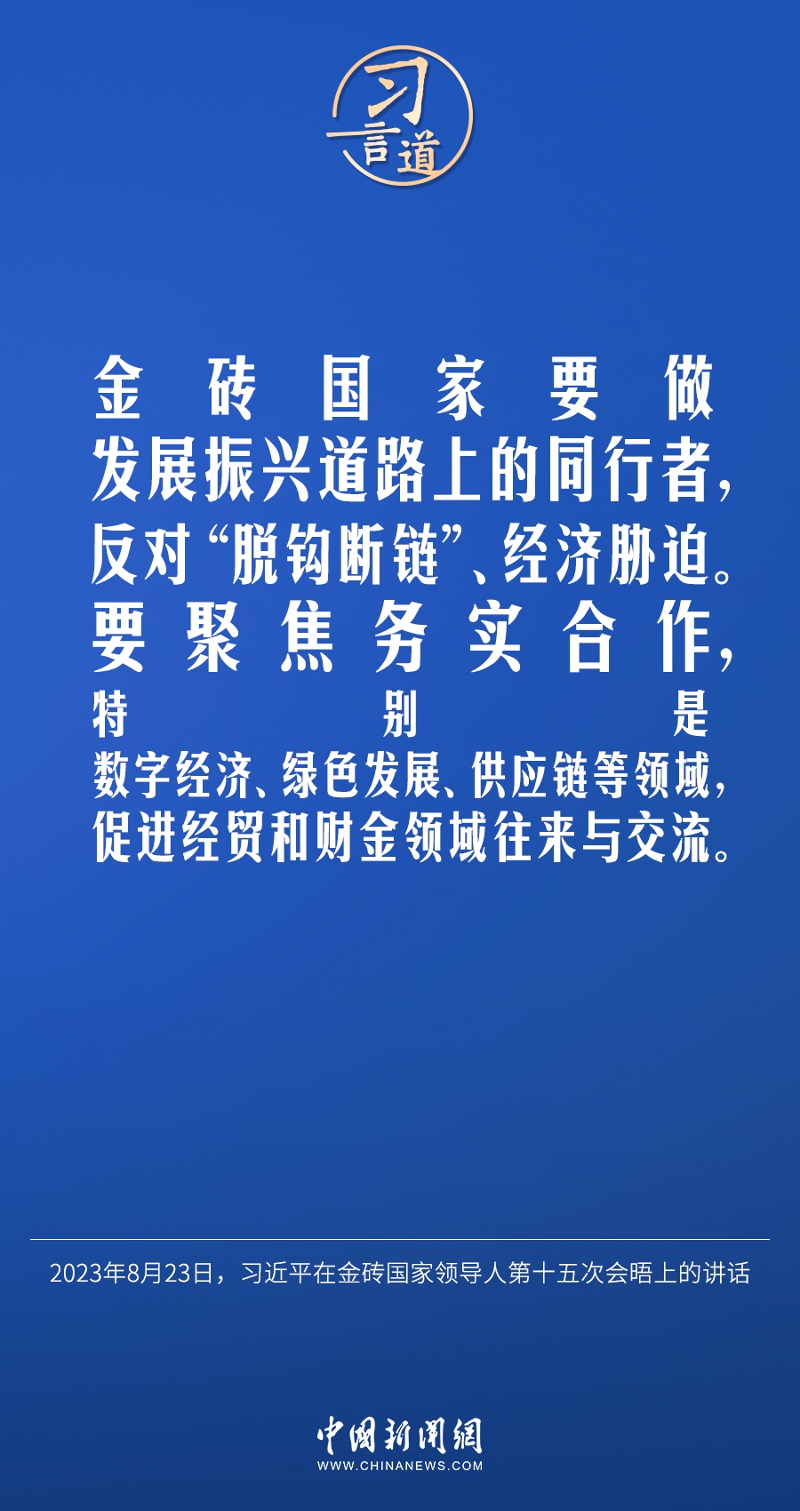 當?shù)貢r間8月23日,中國國家主席習近平在約翰內斯堡出席金磚國家領導人第十五次會晤并發(fā)表重要講話。習近平指出——