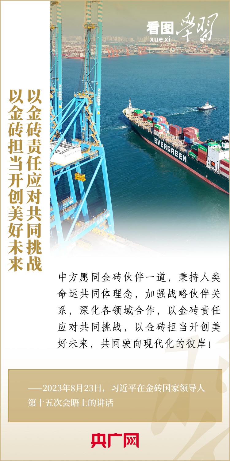 當(dāng)?shù)貢r(shí)間8月23日,習(xí)近平主席出席金磚國家領(lǐng)導(dǎo)人第十五次會(huì)晤并發(fā)表重要講話,強(qiáng)調(diào)金磚國家要秉持開放包容、合作共贏的金磚精神,以金磚責(zé)任應(yīng)對(duì)共同挑戰(zhàn),以金磚擔(dān)當(dāng)開創(chuàng)美好未來。一起來學(xué)習(xí)!
