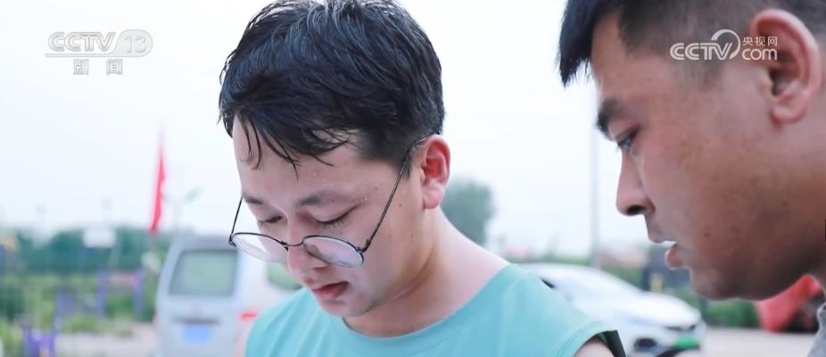 記者見到張義超時(shí),他正忙著幫鄉(xiāng)親們排澇。