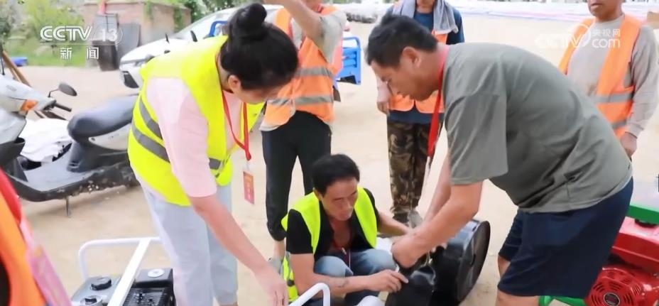 村里有5個(gè)蓄水坑,郭義停緊急協(xié)調(diào)多臺(tái)排水設(shè)備,將蓄水坑排空,分擔(dān)降雨壓力。