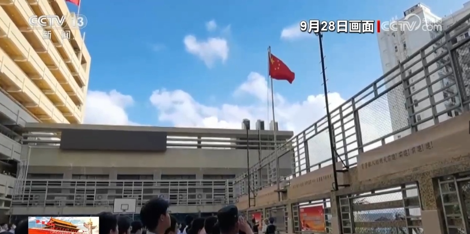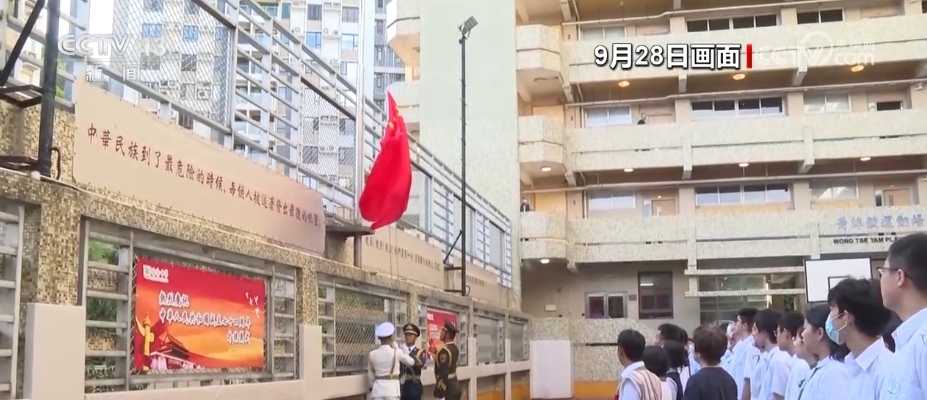 央視網消息:為慶祝中華人民共和國成立74周年,9月28日,香港培僑中學邀請解放軍駐香港部隊三軍儀仗隊來校為全體師生舉行升國旗儀式。培僑中學是新中國成立后首批升起五星紅旗的香港學校之一,從那時起,升國旗的儀式在培僑中學代代相傳,迄今已經延續(xù)了74年。
