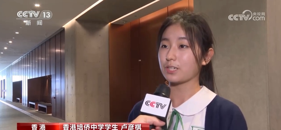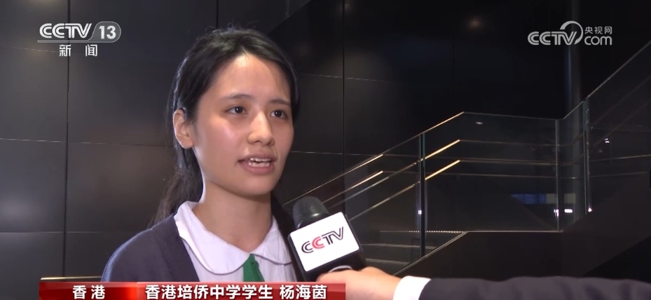 香港培僑中學學生 楊海茵:我們的國家現(xiàn)在非常繁榮昌盛,我們也身處在一個非常和平的環(huán)境中,為我們的國家感到非常自豪。(我們要)做一個對香港、對社會、對國家有貢獻的人。
