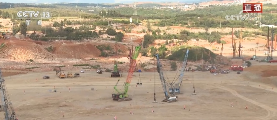 總臺記者 劉文杰:在昆明長水機場改擴建工程的現(xiàn)場,75萬多平方米的作業(yè)范圍內(nèi),有100多臺大型碎石樁基和強夯機。這些高達二三十米的設備,它們遍布整個施工場地,在技術(shù)人員操作下,正在忙碌地進行施工作業(yè)。在工地里穿梭的這些運輸車輛,從其他地方往這里拉送建筑材料,因為現(xiàn)在施工的需求量大,每天要300多臺車來回運輸才能保障到位。