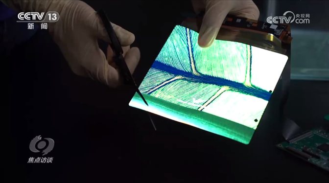 這是一家新型顯示領(lǐng)域科技領(lǐng)軍企業(yè)柔性O(shè)LED高端生產(chǎn)線的實(shí)驗(yàn)室。企業(yè)科研人員向記者展示了他們最新的顛覆性技術(shù)創(chuàng)新成果。