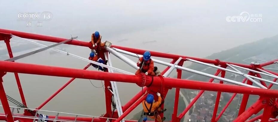 假日期間,湖北6項特高壓工程建設不停工,近3000人堅守崗位。在武漢—南昌雙回1000千伏線路工程現(xiàn)場,百名施工人員在進行跨江塔最后的塔材安裝?,F(xiàn)場通過建立高空微型氣象站和可視化監(jiān)控指揮中心,運用數字化系統(tǒng),實時對作業(yè)過程動態(tài)修正,確保高空人員安裝的精準性和安全性。