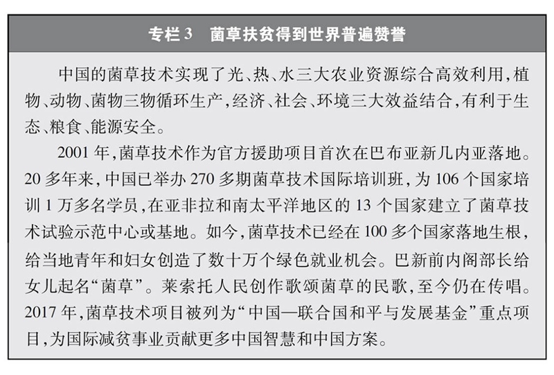 增強(qiáng)共建國(guó)家減貧能力。發(fā)展中國(guó)家仍面臨糧食問(wèn)題。中國(guó)積極參與全球糧農(nóng)治理,與相關(guān)國(guó)家發(fā)布《共同推進(jìn)“一帶一路”建設(shè)農(nóng)業(yè)合作的愿景與行動(dòng)》,與近90個(gè)共建國(guó)家和國(guó)際組織簽署了100余份農(nóng)漁業(yè)合作文件,與共建國(guó)家農(nóng)產(chǎn)品貿(mào)易額達(dá)1394億美元,向70多個(gè)國(guó)家和地區(qū)派出2000多名農(nóng)業(yè)專家和技術(shù)人員,向多個(gè)國(guó)家推廣示范菌草、雜交水稻等1500多項(xiàng)農(nóng)業(yè)技術(shù),幫助亞洲、非洲、南太平洋、拉美和加勒比等地區(qū)推進(jìn)鄉(xiāng)村減貧,促進(jìn)共建國(guó)家現(xiàn)代農(nóng)業(yè)發(fā)展和農(nóng)民增收。促進(jìn)就業(yè)是減貧的重要途徑。在共建“一帶一路”過(guò)程中,中國(guó)與相關(guān)國(guó)家積極推進(jìn)產(chǎn)業(yè)園區(qū)建設(shè),引導(dǎo)企業(yè)通過(guò)開展高水平產(chǎn)業(yè)合作為當(dāng)?shù)鼐用駝?chuàng)造就業(yè)崗位,實(shí)現(xiàn)了“一人就業(yè),全家脫貧”。麥肯錫公司的研究報(bào)告顯示,中國(guó)企業(yè)在非洲雇員本地化率達(dá)89%,有效帶動(dòng)了本地人口就業(yè)。世界銀行預(yù)測(cè),到2030年,共建“一帶一路”相關(guān)投資有望使共建國(guó)家760萬(wàn)人擺脫極端貧困、3200萬(wàn)人擺脫中度貧困。