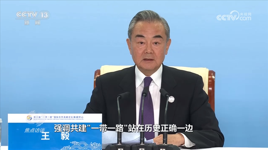 央視網(wǎng)消息(焦點(diǎn)訪談):10月18日,第三屆“一帶一路”國際合作高峰論壇在北京舉行。十年櫛風(fēng)沐雨,十年春華秋實(shí)。中國同各國堅(jiān)守初心、攜手同行,推動(dòng)“一帶一路”國際合作從無到有,蓬勃發(fā)展,取得豐碩成果。本次高峰論壇是共建“一帶一路”進(jìn)程中又一個(gè)重要里程碑。10月18日當(dāng)晚,在高峰論壇結(jié)束之際,中共中央政治局委員、外交部長(zhǎng)王毅舉行中外記者會(huì),介紹高峰論壇重要成果。