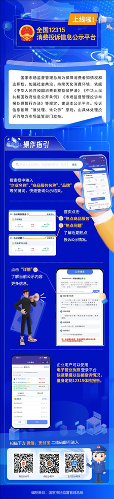 ·全國12315消費投訴信息公示平臺上線,平臺網(wǎng)址為tsgs.12315.cn,小程序、公眾號名稱為“12315投訴公示”,可查詢特定商家投訴情況。