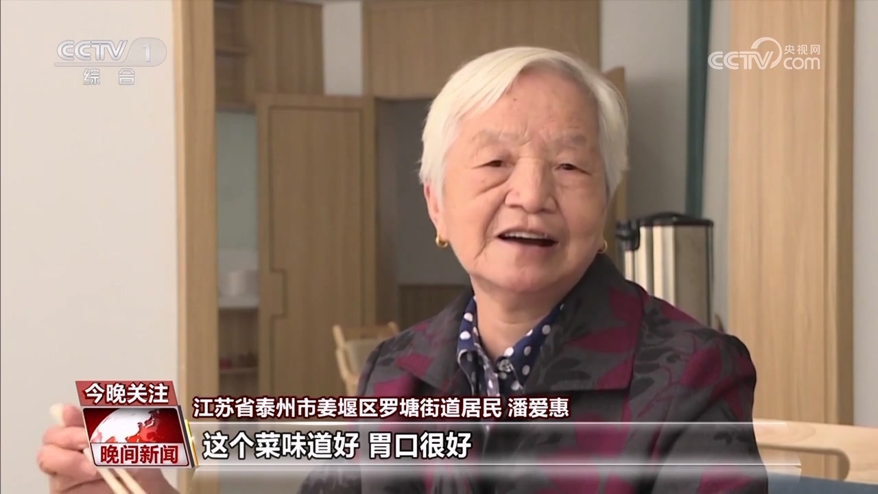 江蘇省泰州市姜堰區(qū)羅塘街道居民 潘愛惠:這個(gè)飯也煮得很好吃,這個(gè)菜味道好,胃口很好。