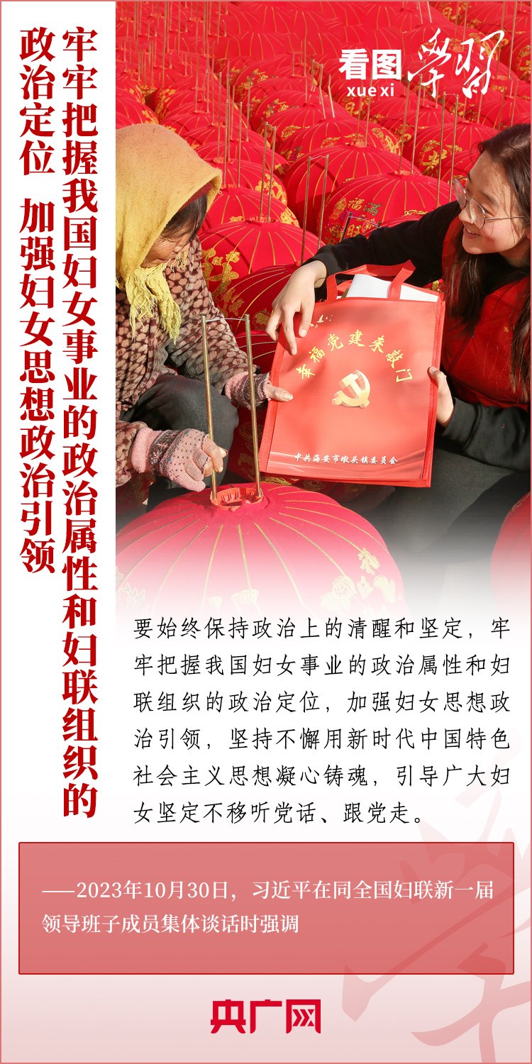 10月30日下午,習(xí)近平總書記同全國(guó)婦聯(lián)新一屆領(lǐng)導(dǎo)班子成員集體談話并發(fā)表重要講話??倳洀?qiáng)調(diào),要堅(jiān)定不移走中國(guó)特色社會(huì)主義婦女發(fā)展道路,激勵(lì)廣大婦女自尊自信、自立自強(qiáng),奮進(jìn)新征程、建功新時(shí)代,為中國(guó)式現(xiàn)代化建設(shè)貢獻(xiàn)巾幗智慧和力量。一起來(lái)學(xué)習(xí)!