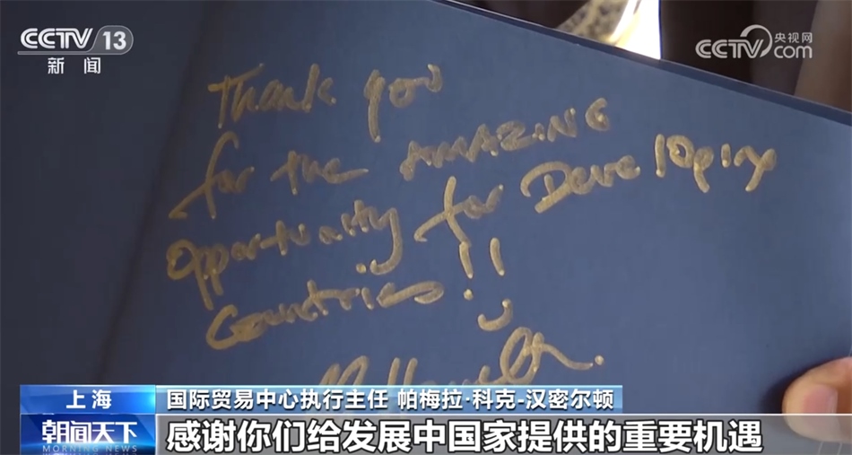 總臺(tái)央視記者昨天專訪了國際貿(mào)易中心執(zhí)行主任帕梅拉·科克-漢密爾頓,這是她首次參加進(jìn)博會(huì),她表示,進(jìn)博會(huì)是全球獨(dú)一無二的進(jìn)口平臺(tái),包括進(jìn)博會(huì)在內(nèi),中國持續(xù)開放的舉措正在推動(dòng)世界發(fā)展邁出新步伐。