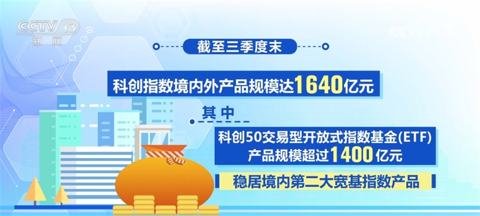 數(shù)據(jù)顯示,截至三季度末,科創(chuàng)指數(shù)境內(nèi)外產(chǎn)品規(guī)模達(dá)1640億元,其中,科創(chuàng)50交易型開放式指數(shù)基金(ETF)產(chǎn)品規(guī)模超過1400億元,穩(wěn)居境內(nèi)第二大寬基指數(shù)產(chǎn)品。