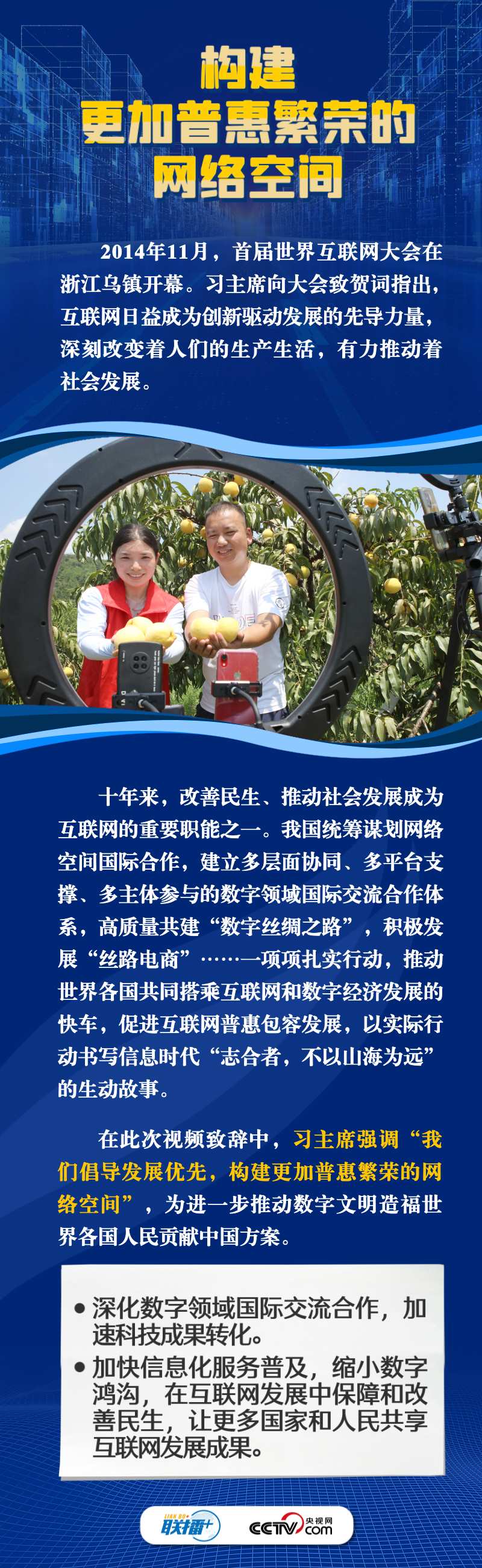 面對新的時代課題,習(xí)主席在此次視頻致辭中倡導(dǎo)構(gòu)建更加普惠繁榮、更加和平安全、更加平等包容的網(wǎng)絡(luò)空間。這三個“網(wǎng)絡(luò)空間”具體內(nèi)容是什么?構(gòu)建網(wǎng)絡(luò)“新空間”有什么具體措施?央視網(wǎng)《聯(lián)播+》與您一同學(xué)習(xí)。