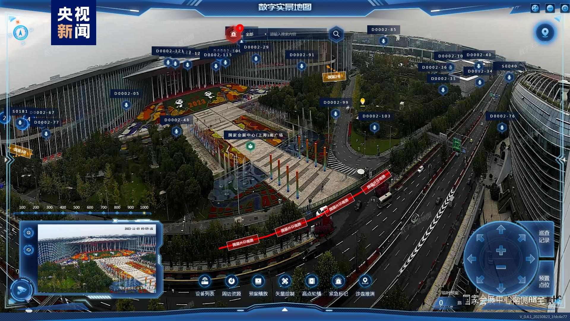 為強化精準指揮調(diào)度,消防部門專門制作了國家會展中心的三維模型,將本屆參展的1888個展位全部進行了數(shù)字化標(biāo)識,在指揮平臺主頁面可實現(xiàn)目標(biāo)展位一鍵搜索和快速定位。以6.1號館為試點,通過激光雷達和可見光融合傳感器進行快速掃描,建立展臺的三維精模,配置安保模型算法,將現(xiàn)場監(jiān)控攝像頭傳回的二維畫面與三維模型匹配,實現(xiàn)虛實場景交互融合。同時通過采集巡館人員面部、著裝等特征信息,利用AI算法,實時在館內(nèi)人群中標(biāo)定巡館人員,進行精準定位。一旦發(fā)現(xiàn)異常狀況,指揮部值班人員能快速、精準地向所有駐防人員提供最佳處置線路指引和最優(yōu)輔助決策。