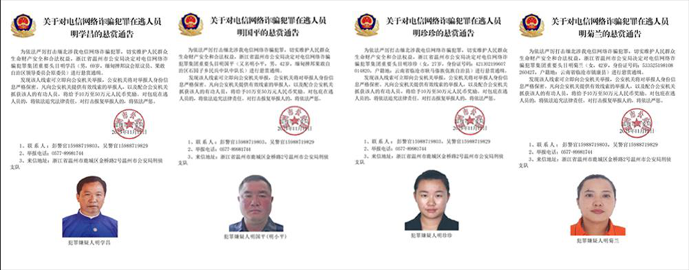 ·公安機關(guān)公開通緝緬北果敢自治區(qū)電信網(wǎng)絡(luò)詐騙犯罪集團重要頭目明學昌、明國平、明菊蘭、明珍珍。