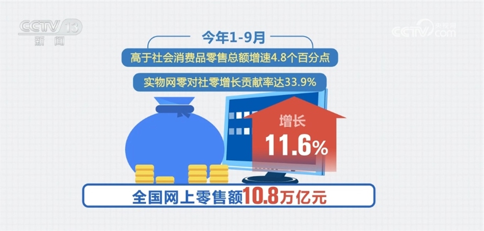 ?????? 據(jù)了解,我國零售市場的電商滲透率逐年走高,今年1—9月,全國網(wǎng)上零售額增長11.6%,高于社會消費(fèi)品零售總額增速4.8個百分點(diǎn),實物商品網(wǎng)上零售對社會消費(fèi)品零售增長貢獻(xiàn)率達(dá)33.9%。