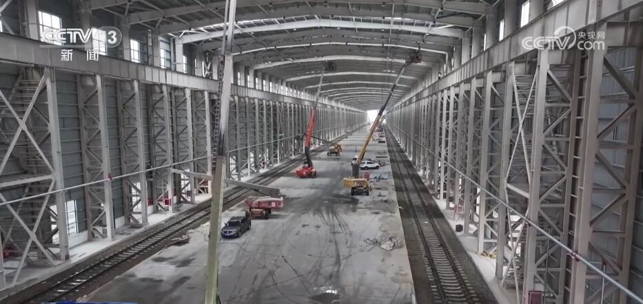 總臺(tái)記者 崔寧:在我的身后有一小一大、一舊一新兩座換裝庫,它們主要是對(duì)入境的中歐班列進(jìn)行換裝。小的這座看起來也比較舊,它建于2008年,到目前為止已經(jīng)投用了整整15年。隨著“一帶一路”倡議的不斷推進(jìn),現(xiàn)在經(jīng)阿拉山口口岸出入境的中歐班列數(shù)量已經(jīng)由最初月均3.5列增加到日均17列。所以,它的存在也已經(jīng)遠(yuǎn)遠(yuǎn)不能滿足現(xiàn)在發(fā)展的需求,也正因?yàn)槿绱?,在它的旁邊又新建了一座大的換裝庫,它建成投用之后將取而代之成為目前亞洲最大的室內(nèi)集裝箱換裝庫。